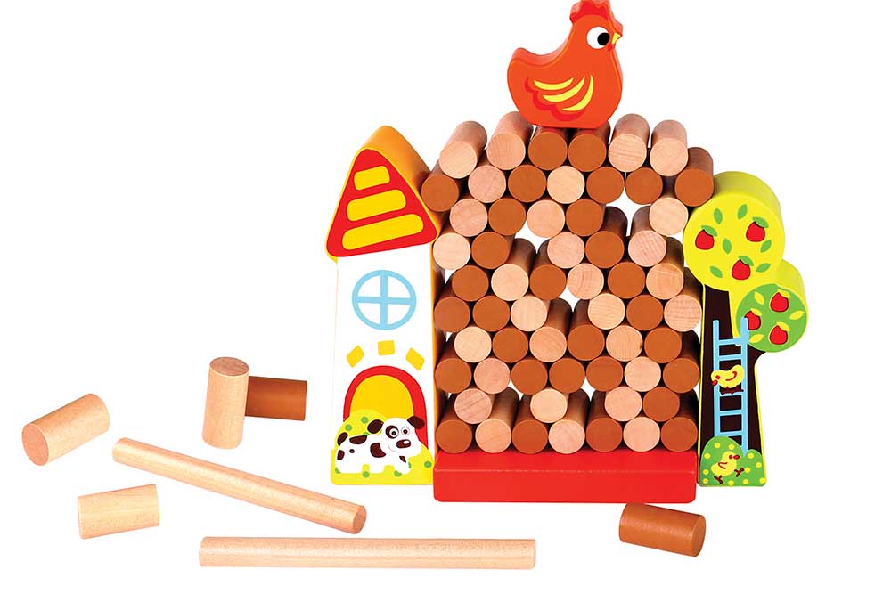 Ця весела гра-баланс від Tooky Toy стане улюбленою настільною грою для всієї родини! Вона включає дерев’яні палички та брусочки, які потрібно обережно виштовхувати з основи, не впустивши милу курочку з вершини.
