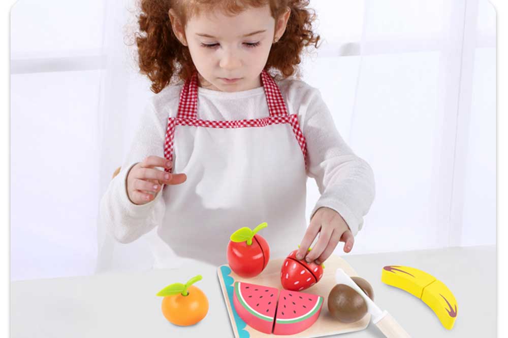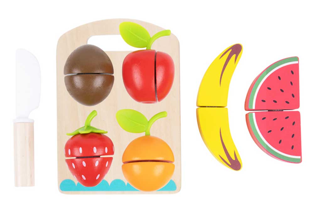 Кожен фрукт складається з двох частин, з’єднаних липучкою, що дозволяє малюкові імітувати справжній процес нарізування. Це робить гру ще цікавішою та ближчою до реального досвіду кулінарії.