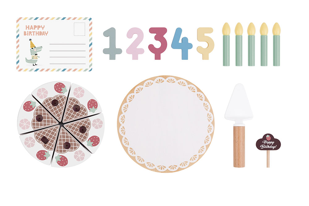 Дерев’яний ігровий набір «Святковий торт» — це чудова розвиваюча іграшка для дітей, яка допомагає малюкам весело святкувати, навчатися та розвивати важливі навички через гру. У комплект входить: шість шматочків торта, п’ять цифр-свічок, п’ять звичайних свічок, тарілка, лопатка для «різання», а також листівка або табличка.