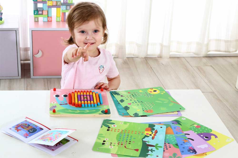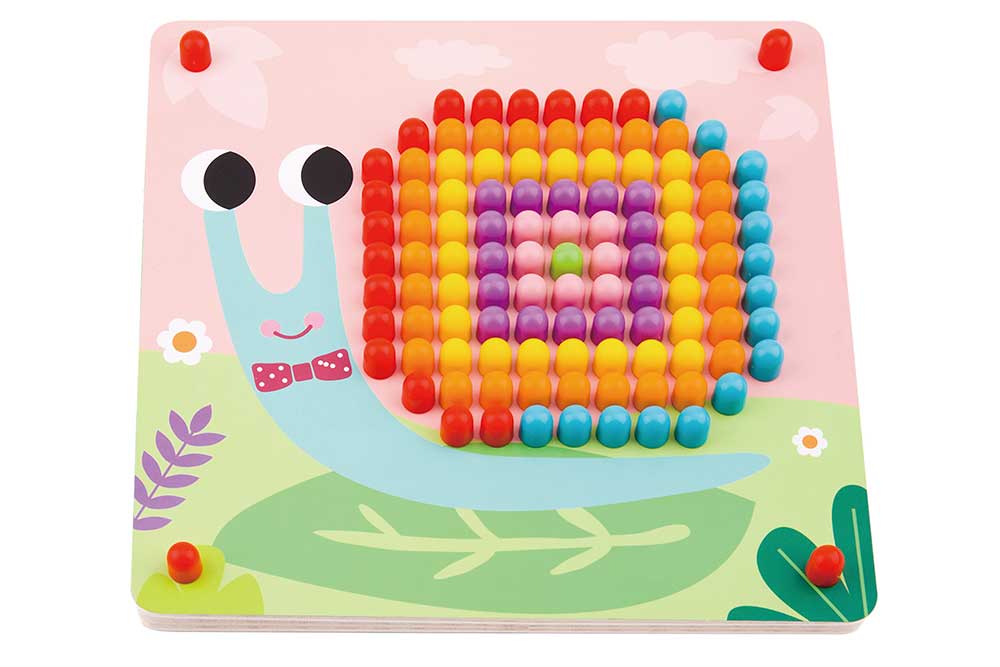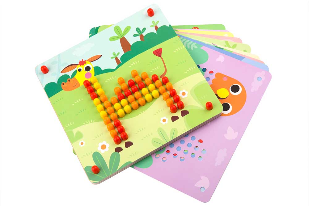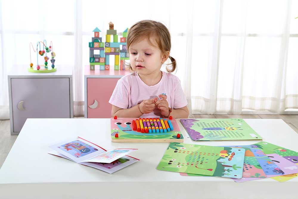 Ця унікальна настільна гра з кілочками допомагає дітям вивчати кольори, рахунок, координацію рухів та розвиває увагу, творчі здібності та посидючість. Просто оберіть кілочок потрібного кольору та вставте його у відповідне місце на дошці, створюючи яскраві картини за зразками або власною уявою.