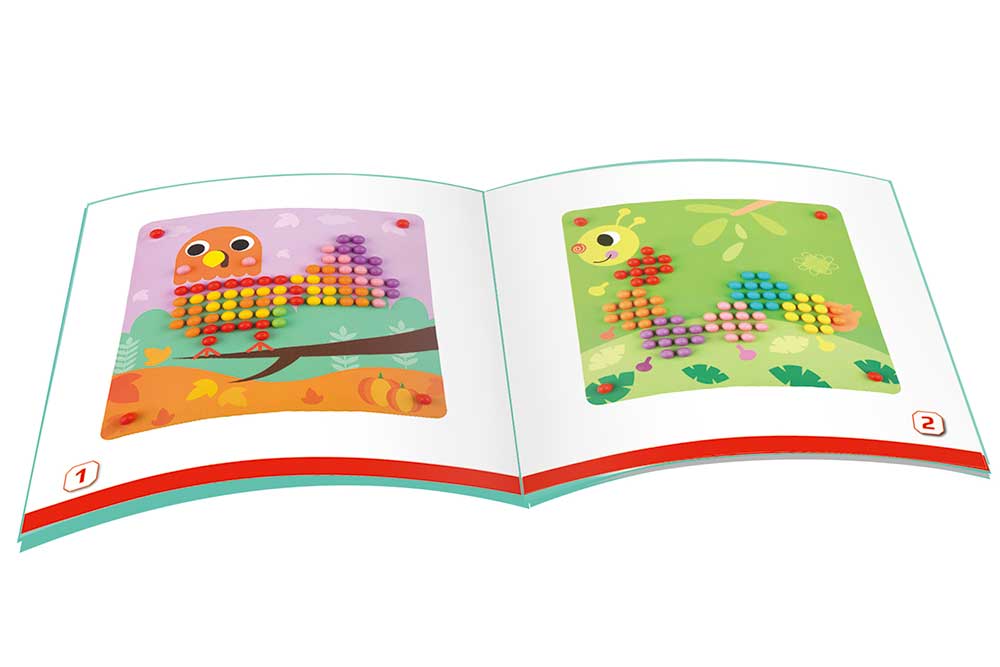 Фантастична барвиста дерев’яна мозаїка — ідеальна розвиваюча гра для найменших творців! Створюйте візерунки, такі як мушля равлика або яскрава риб’яча луска, тренуючи точність, терпіння та моторику.