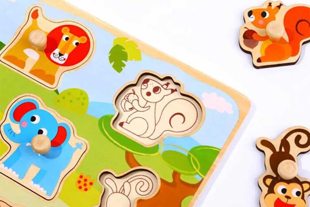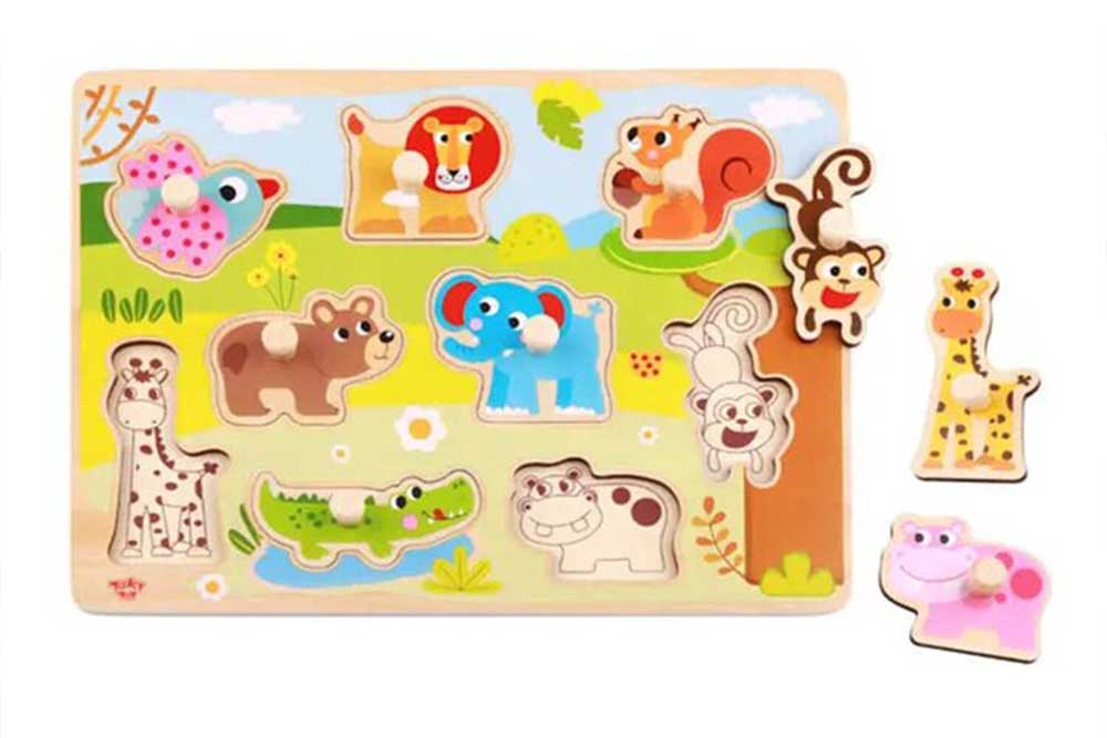 Рамка-вкладанка виготовлена з натуральної деревини і пофарбована нетоксичними фарбами, що робить її безпечною для найменших. Великі деталі зручно тримати у маленьких ручках.