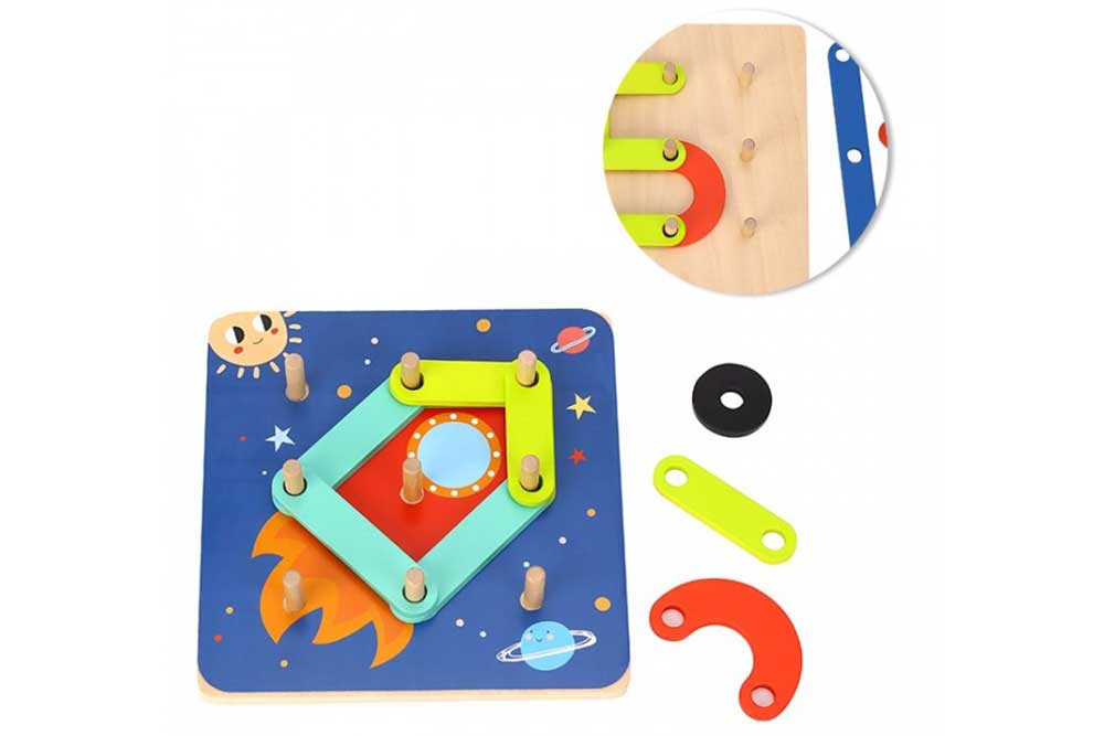Дерев’яна гра “Мій навчальний пазл” — це розвивальна креативна гра для дітей від 2 років, яка навчає виконувати завдання за зразком та тренує логіку, пам’ять і просторове мислення.